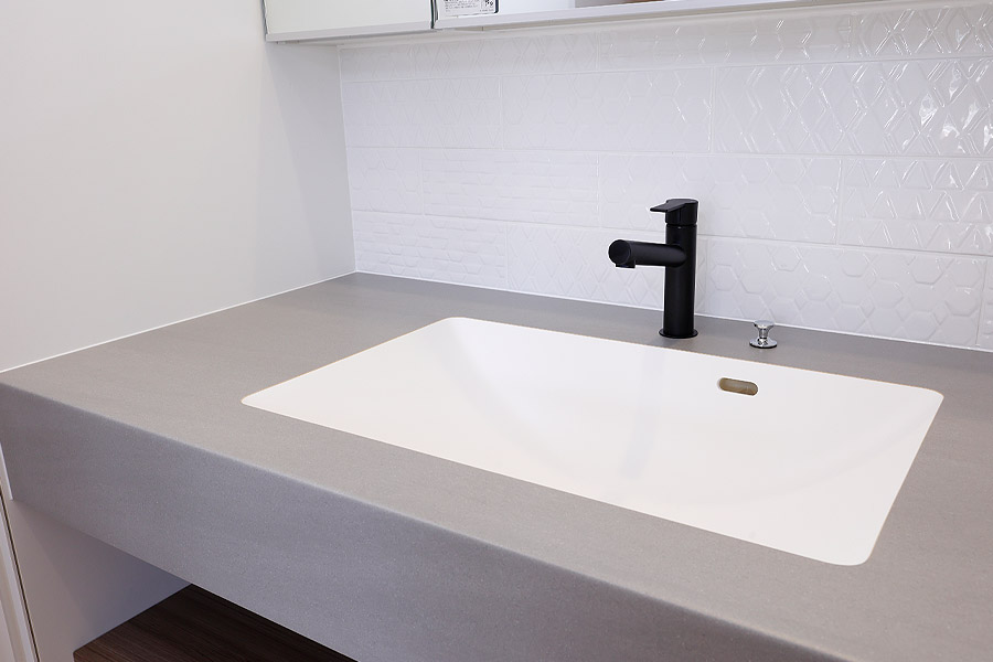 ただし、注意したいのがお手入れのしやすさです。 ボウルがカウンターの上に乗る「置き型」は、見た目は可愛いものの、水滴が飛び散りやすく、カウンターの素材によってはシミの原因になることも。お掃除を楽にしたいなら、ボウルがカウンターに入り込む「埋め込み式」がおすすめです。