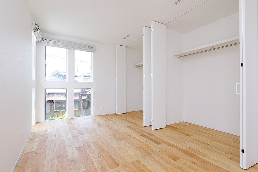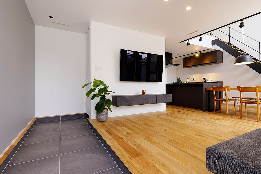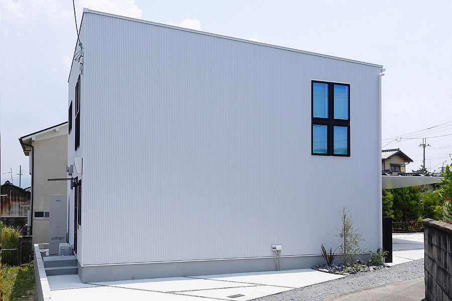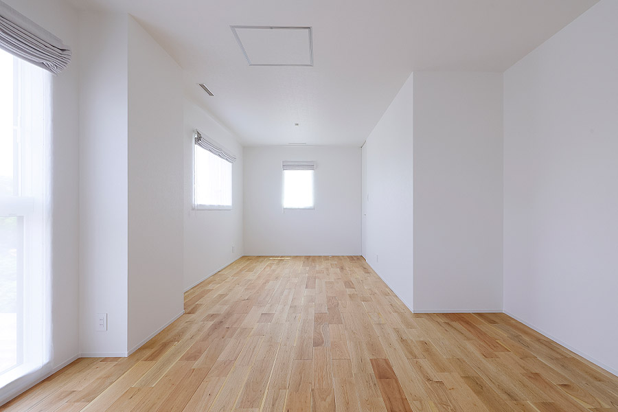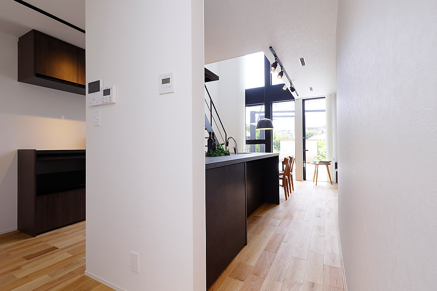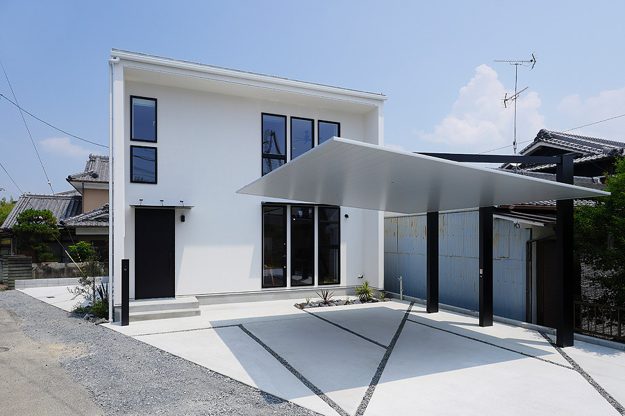 さらに、LDKには隣家やカーポートの影が落ちないような設計を希望されており、全館空調で一年中快適な空間をつくるご提案をさせていただきました。また、外観は白を基調に、お洒落でかっこよく、内装では無垢材の床にこだわりがあり、自然素材の風合いを大切にされました。