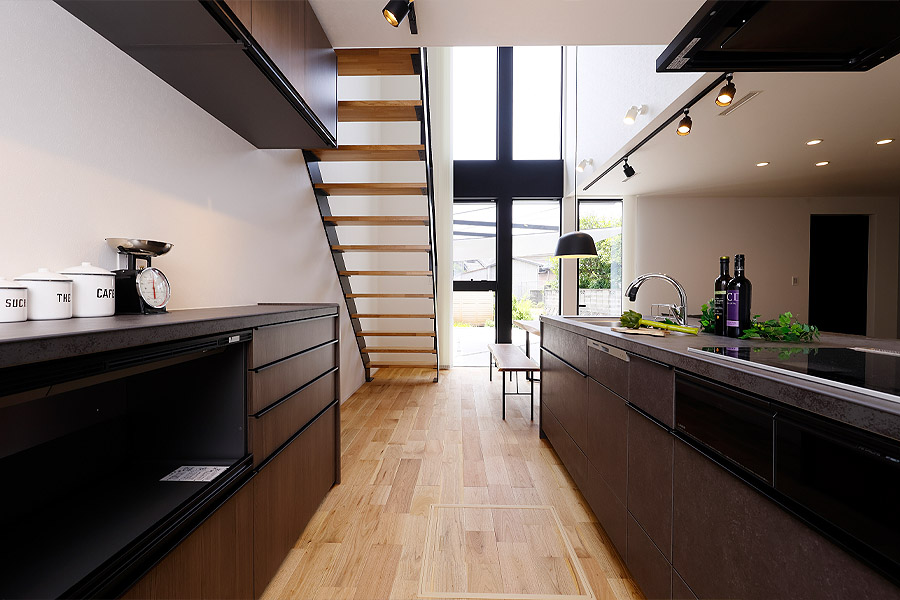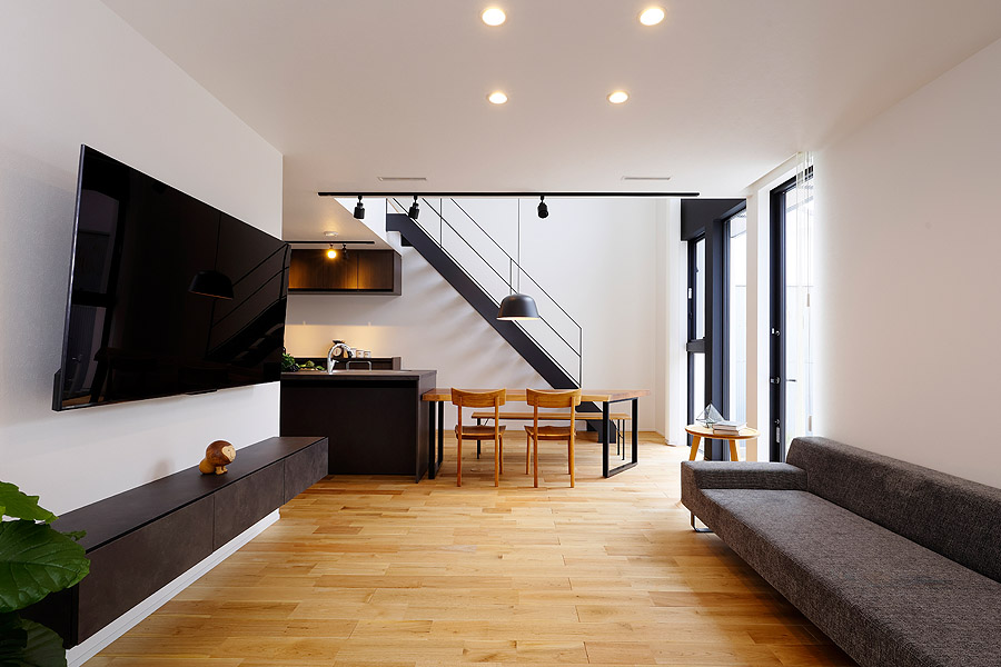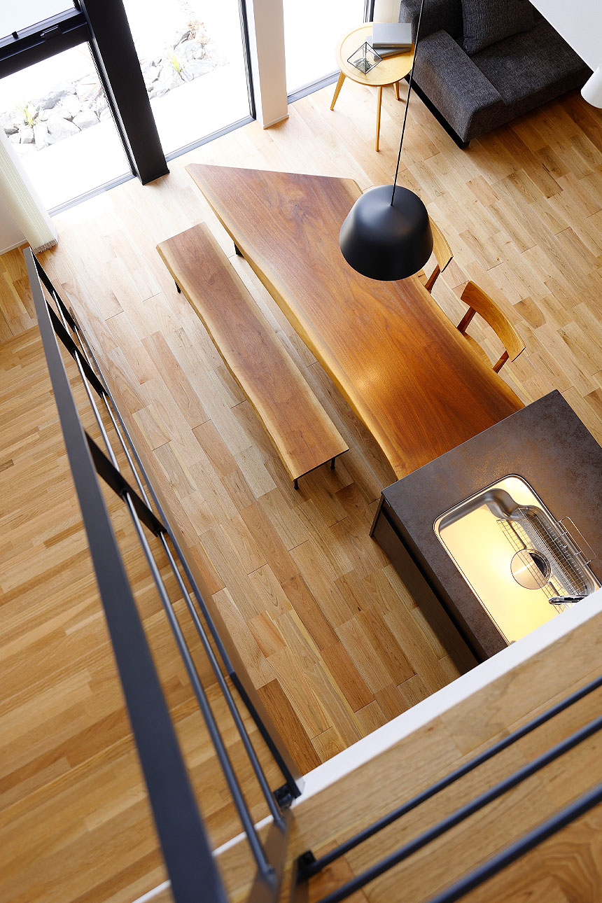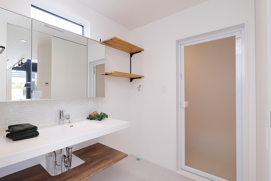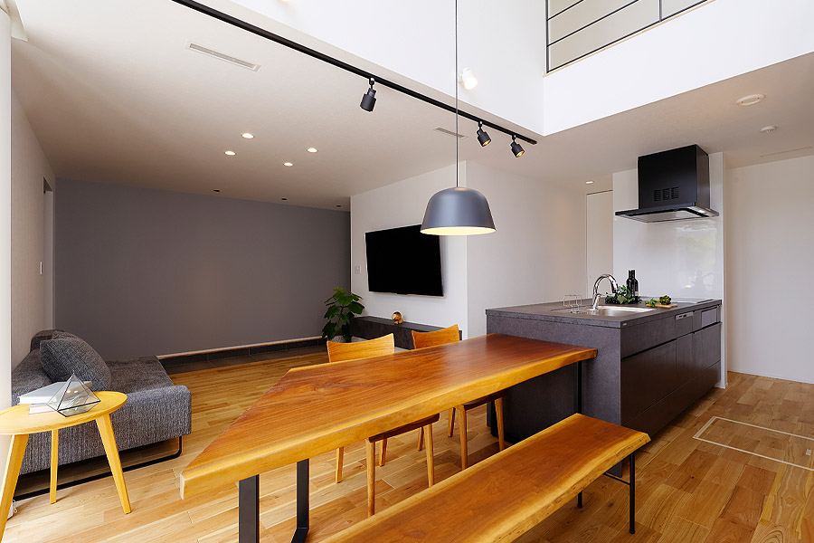 さらに、LDKには隣家やカーポートの影が落ちないような設計を希望されており、全館空調で一年中快適な空間をつくるご提案をさせていただきました。また、外観は白を基調に、お洒落でかっこよく、内装では無垢材の床にこだわりがあり、自然素材の風合いを大切にされました。